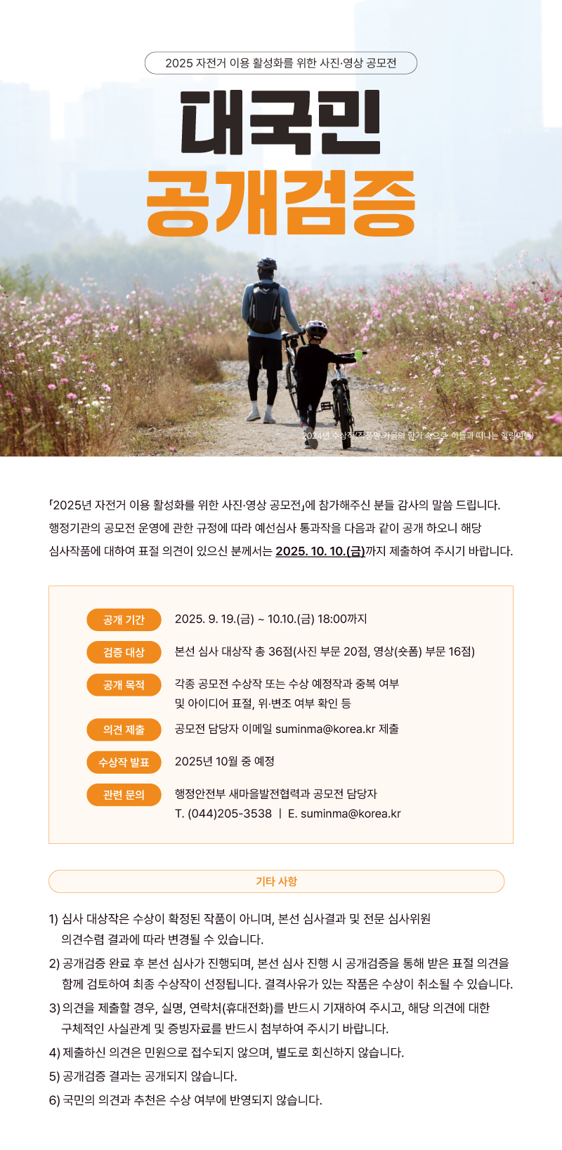 2025년 자전거 이용활성화 사진, 영상 공모전 수상후보작 대국민 공개검증