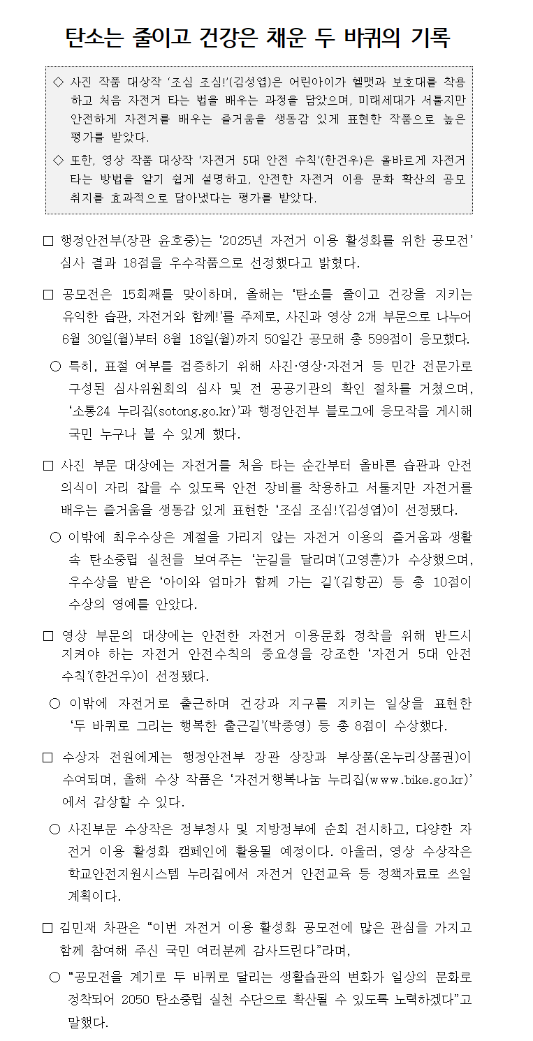 2025년 자전거 이용 활성화 공모전’ 사진·영상 당선작 18점 발표